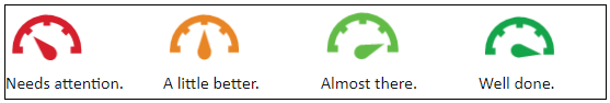 This is my first time teaching at ARC, and I have one online course in Canvas this semester. I have noticed little gauges on my pages when I am working on them. The gauges are on the bottoms of images and files I use on my Canvas pages. I have used Canvas at other schools and haven’t seen this before. Can you explain them, please?
